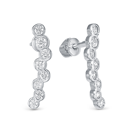 Серьги из серебра 925 пробы с подвесной частью. Подходят для ношения на каждый день или создания праздничных образов. Сочетаются с любым стилем в одежде. Детали: Изготовлены из серебра 925 пробы, покрыты родием. Вставка - фианиты высшего качества бриллиантовой огранки. Английский замок. Размер центральных камней 5 мм, 6 мм и 7,5 мм. Длина подвесной части с камнями - 52 мм. Общая длина серьги - 64,4 мм. Внутренний размер замка для посадки на мочку уха - 8,4 мм.