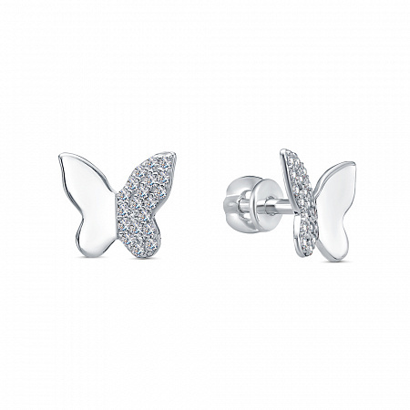 Серьги гвоздики из серебра 925 пробы. Сочетается с любым стилем в одежде. Подходят для создания праздничного образа или ношения на каждый день. Изюминка - изготовлены в виже бабочки, одно из крыльев которой украшено россыпью камней. Детали: изготовлены из серебра 925 пробы. Покрыты родием. Вставка - фианиты высшего качества бриллиантовой огранки.