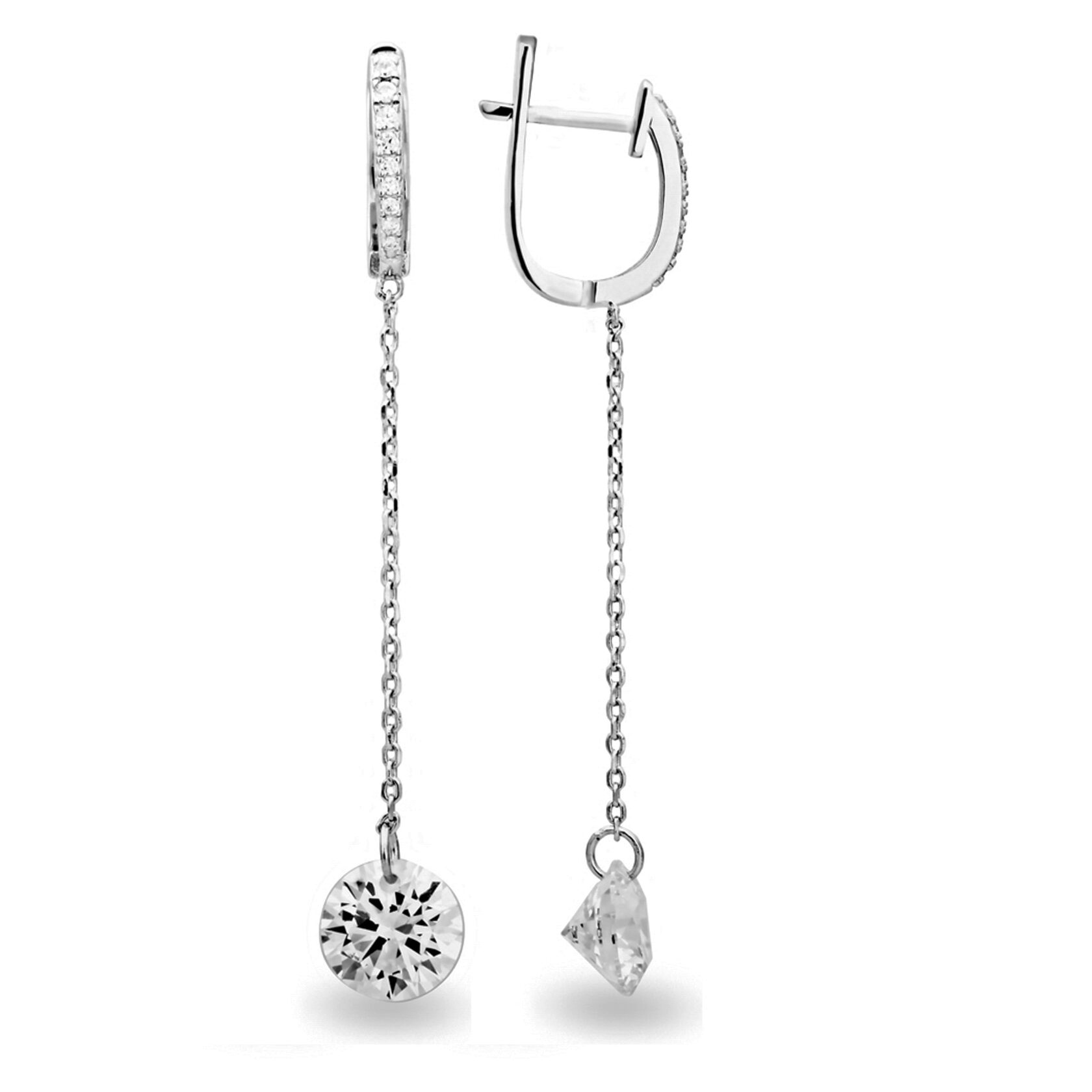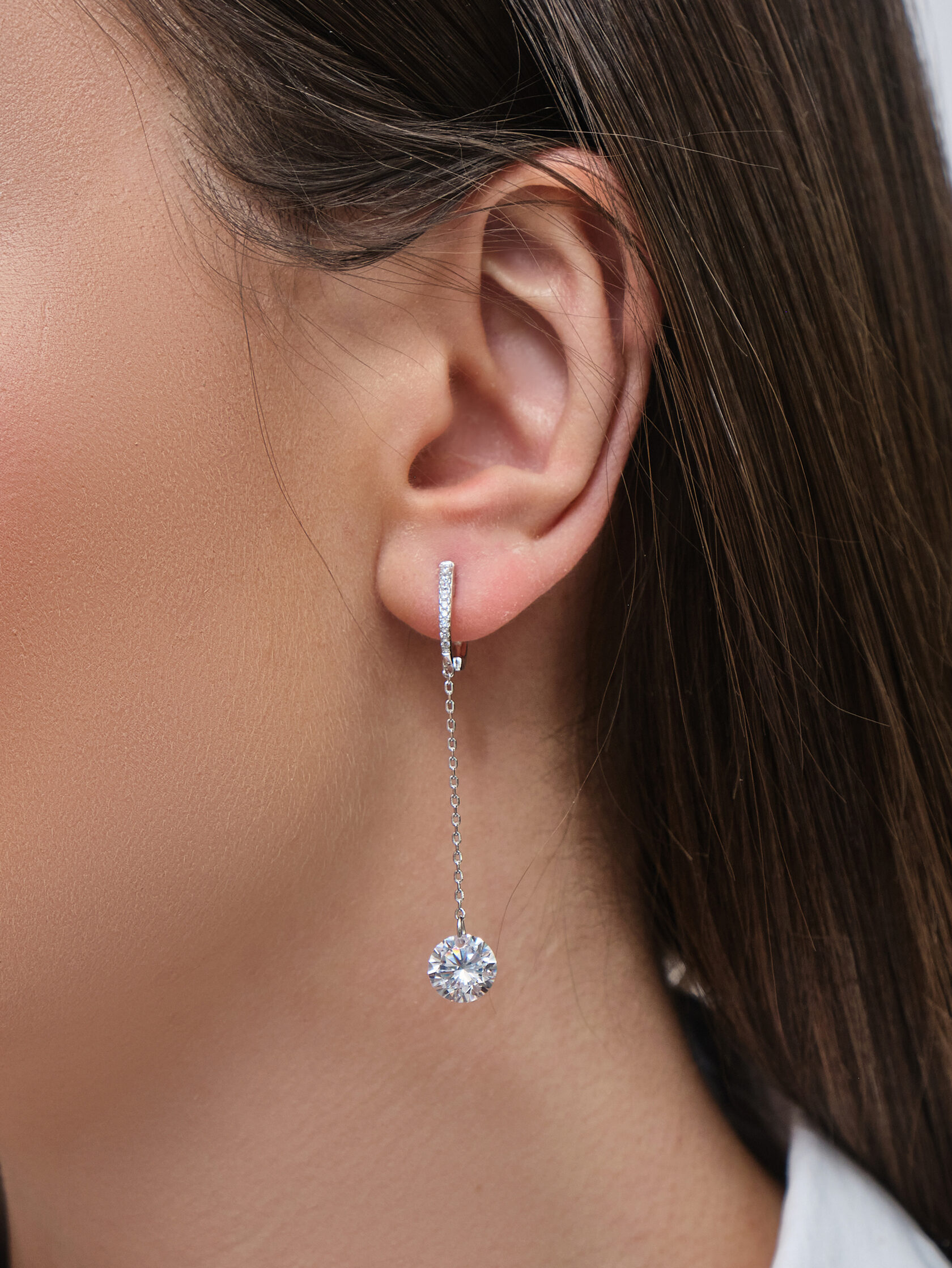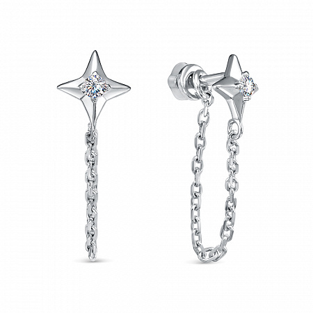 Серьги цепочки унисекс из серебра 925 пробы. Подходят для ношения на каждый день. Сочетаются с любым стилем в одежде. Можно использовать для создания сетов из серег на ухе. Детали: изготовлены из серебра 925 пробы. Покрыты родием. Вставка - фианиты высшего качества бриллиантовой огранки.