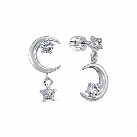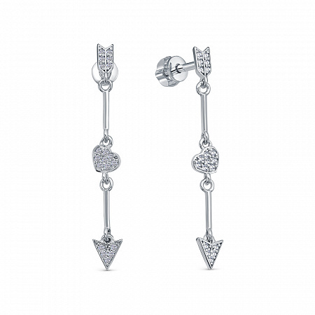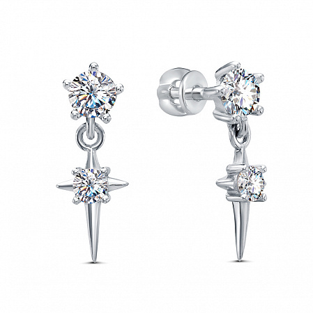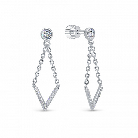 Серьги из серебра 925 пробы с подвесной частью. Подходят для ношения на каждый день или создания праздничных образов. Сочетаются с любым стилем в одежде. Детали: изготовлены из серебра 925 пробы. Покрыты родием. Вставка - фианиты высшего качества бриллиантовой огранки. Винтовой замок.