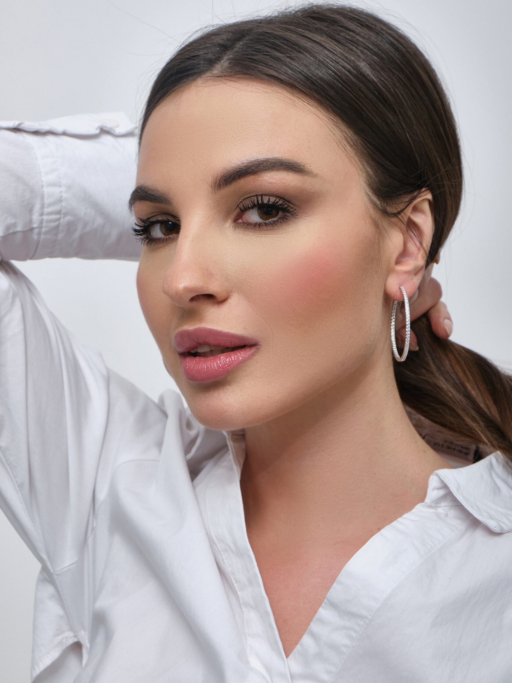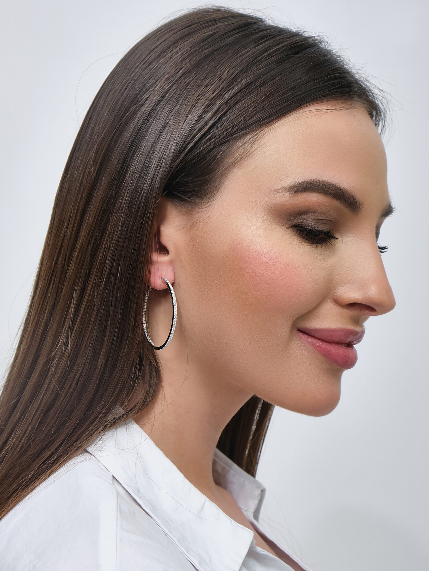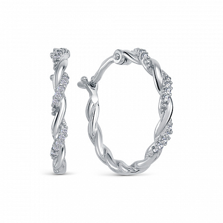 Серьги кольца из серебра 925 пробы. Подходят для ношения на каждый день или создания праздничных образов. Сочетаются с любым стилем в одежде. Детали: изготовлены из серебра 925 пробы. Покрыты родием. Вставка - фианиты высшего качества бриллиантовой огранки. Винтовой замок.