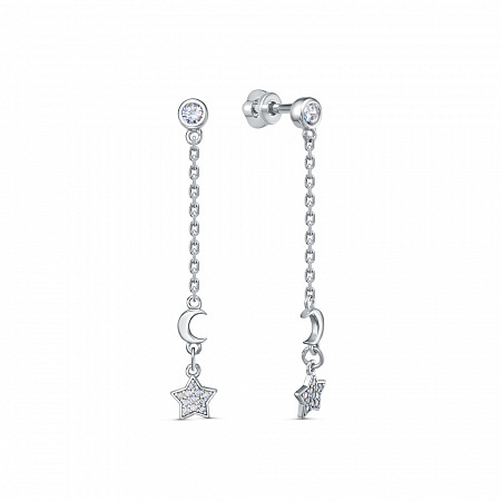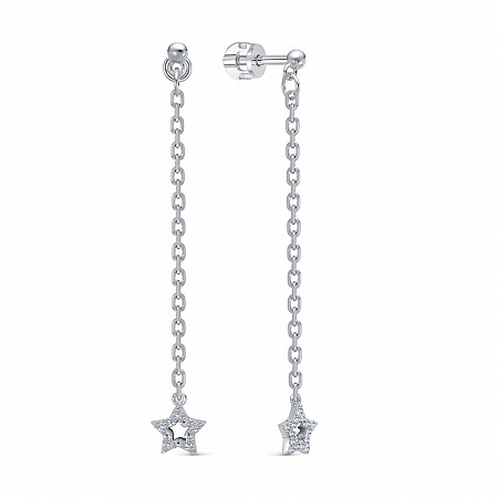 Серьги из серебра 925 пробы с подвесной частью. Подходят для ношения на каждый день или создания праздничных образов. Сочетаются с любым стилем в одежде. Детали: Изготовлены из серебра 925 пробы, покрыты родием.