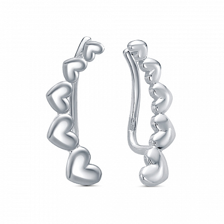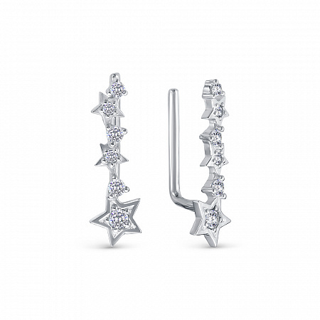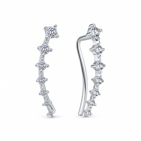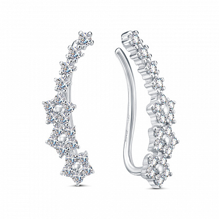 Женские серьги-каффы/зажимы из серебра 925 пробы с фианитами. Стильные дизайнерские серёжки отлично подходят для повседневной носки, а также эффектно дополнят нарядный, вечерний, праздничный или свадебный образ. Современные ювелирные изделия легко сочетаются с любой одеждой. Вставки - фианиты бриллиантовой огранки.
