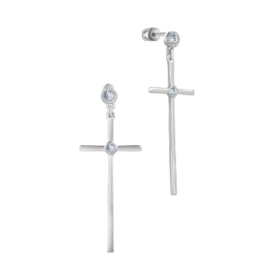Серьги цепочки крестики