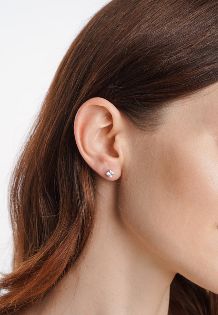 Серьги гвоздики из серебра 925 пробы. Сочетается с любым стилем в одежде. Базовые серьги. Подходят для создания любого образа или ношения на каждый день. Детали: Изготовлены из серебра 925 пробы, покрыты родием. Вставка - фианиты высшего качества бриллиантовой огранки. Винтовой замок. Размер камня - 4,5 на 4,5 мм.