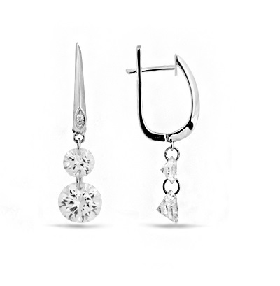 Серьги из серебра 925 пробы с подвесной частью. Подходят для ношения на каждый день или создания праздничных образов. Сочетаются с любым стилем в одежде. Детали: Изготовлены из серебра 925 пробы, покрыты родием. Вставка - фианиты высшего качества бриллиантовой огранки. Английский замок. Диаметр центральных камней 7 мм и 5 мм. Общий размер подвесной части с камнями - 15 мм. Общая длина серьги - 30,5 мм. Внутренний размер замка для посадки на мочку уха - 9,5 мм.