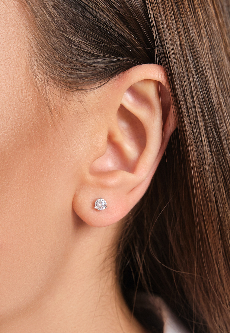 Серьги гвоздики из серебра 925 пробы. Сочетается с любым стилем в одежде. Базовые серьги. Подходят для создания любого образа или ношения на каждый день. Детали: Изготовлены из серебра 925 пробы, покрыты родием. Вставка - фианиты высшего качества бриллиантовой огранки. Винтовой замок. Диаметр камня - 3 мм