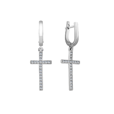 Серьги из серебра 925 пробы с фианитами. Подходят для ношения на каждый день или создания яркого образа. Сочетаются с любым стилем в одежде. Детали: Изготовлены из серебра 925 пробы, покрыты родием. Вставка - фианиты высшего качества бриллиантовой огранки. Английский замок. Размер подвесного элемента - 23,5 х 12 мм. Общая длина серьги 37 мм. Внутренний размер замка для посадки на мочку уха - 9 мм.