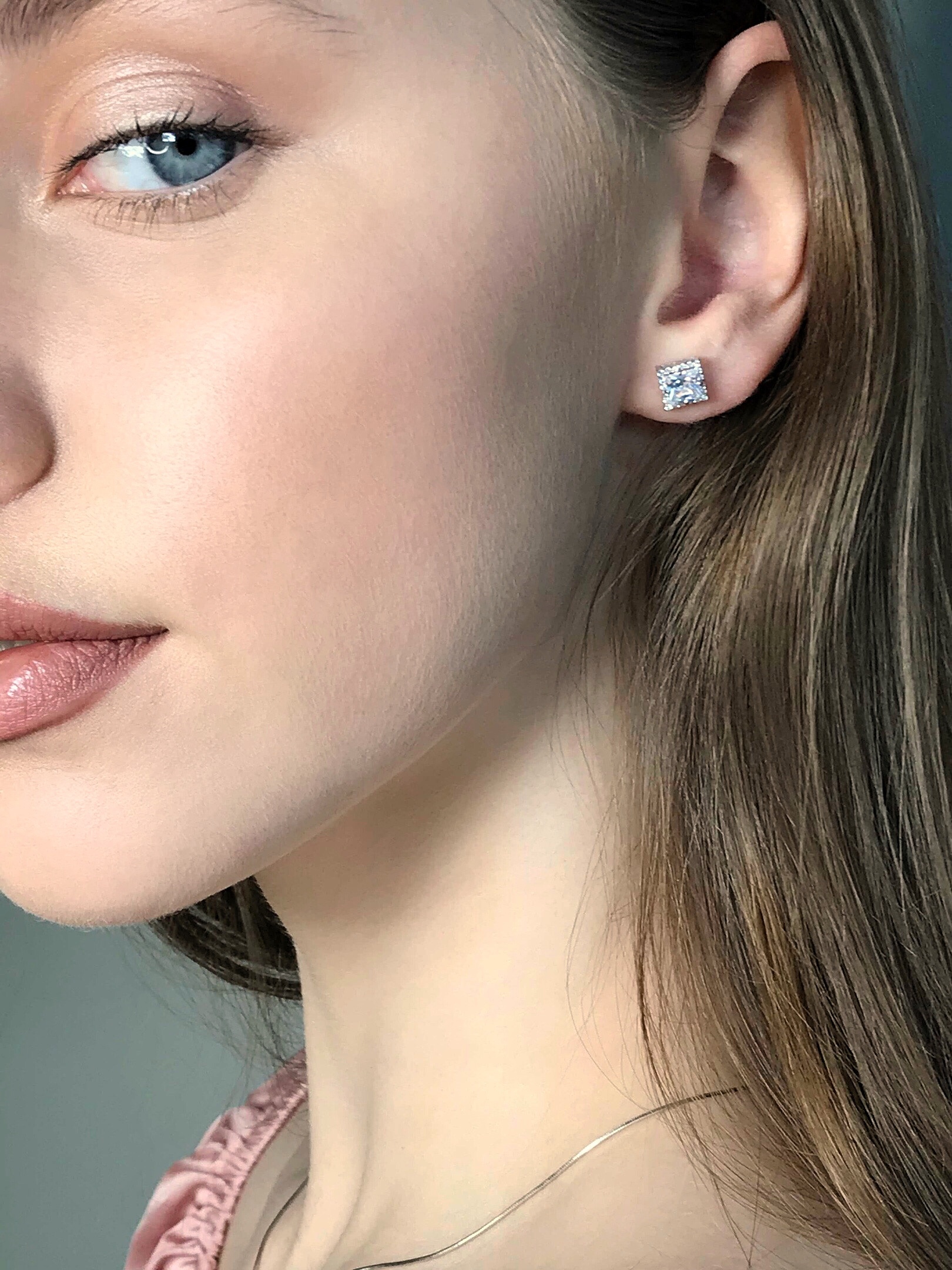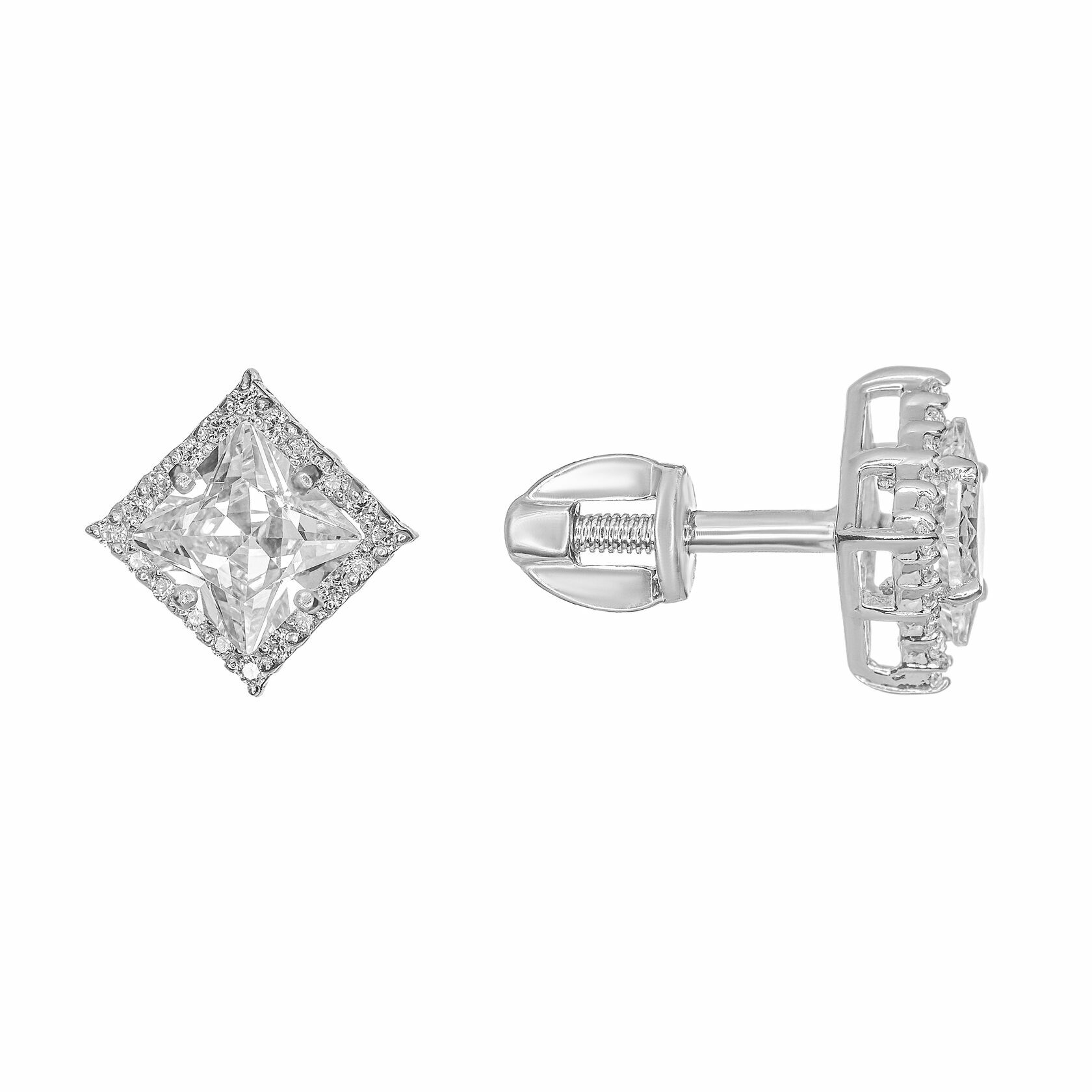 Серьги гвоздики из серебра 925 пробы. Сочетается с любым стилем в одежде. Базовые серьги. Подходят для создания любого образа или ношения на каждый день. Детали: Изготовлены из серебра 925 пробы, покрыты родием. Вставка - фианиты высшего качества бриллиантовой огранки. Винтовой замок. Размер камня - 4,5 на 4,5 мм.