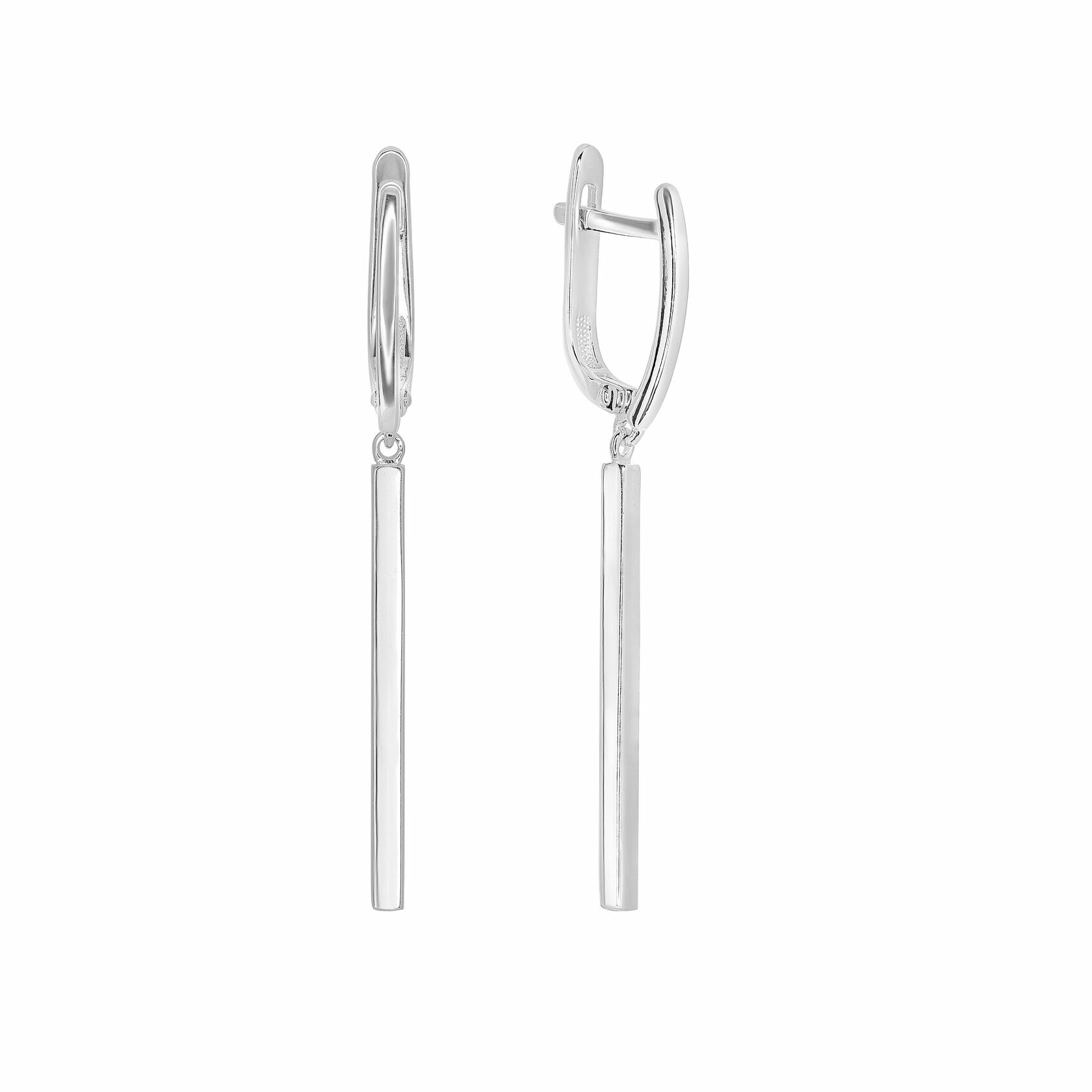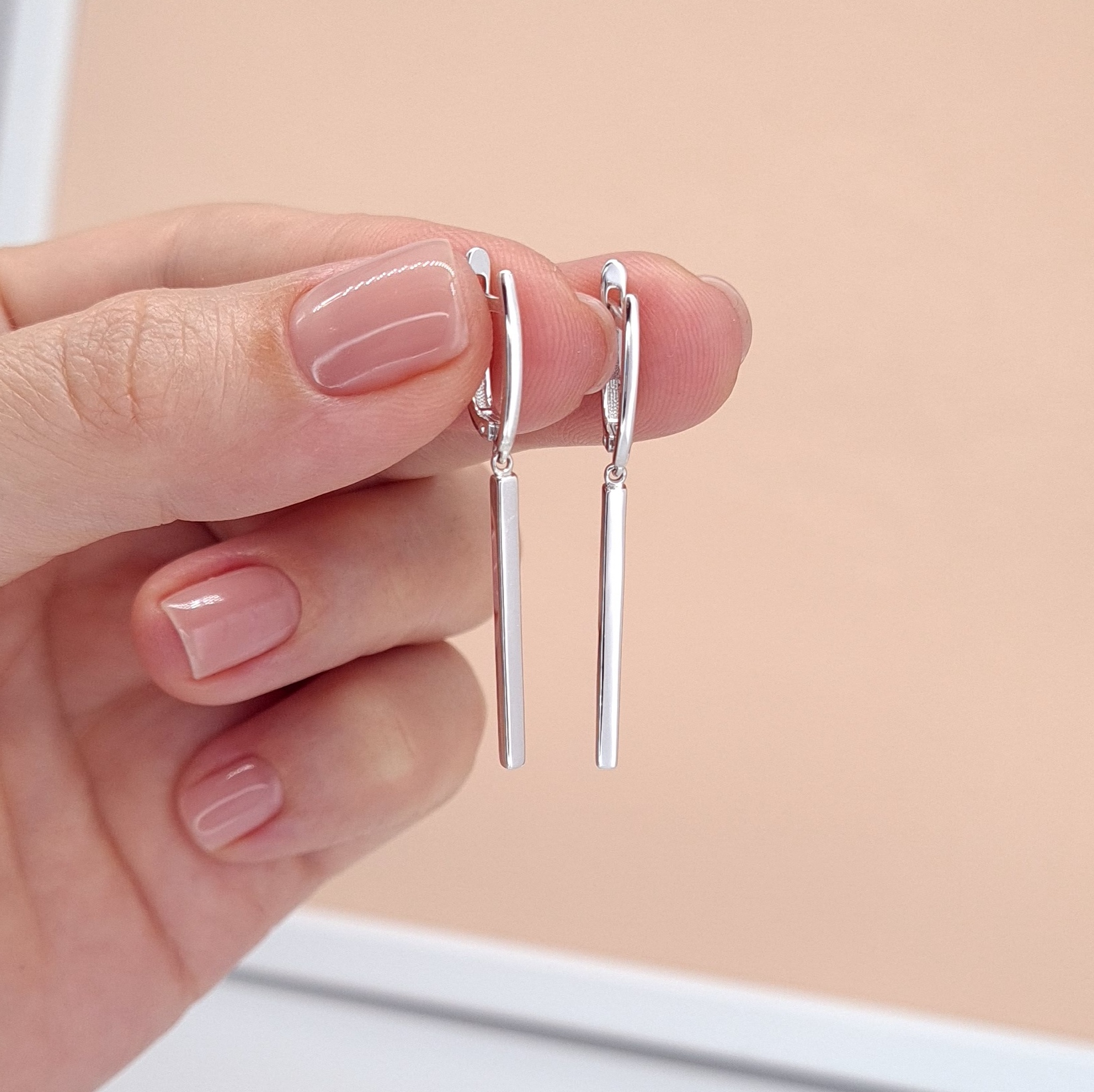 Серьги подвески в стиле минимализм из серебра 925 пробы. Сочетаются с образами в стиле кэжуал, классическими образами. Можно использовать для создания сетов из нескольких серег на ухе. Детали: Изготовлены из серебра 925 пробы, покрыты родием. Без вставок. Английский замок. Общая длина серьги - 39 мм. Длина подвесной части - 25 мм. Толщина подвесной части - 2 мм. Внутренний размер замка для посадки на мочку уха - 10 мм.